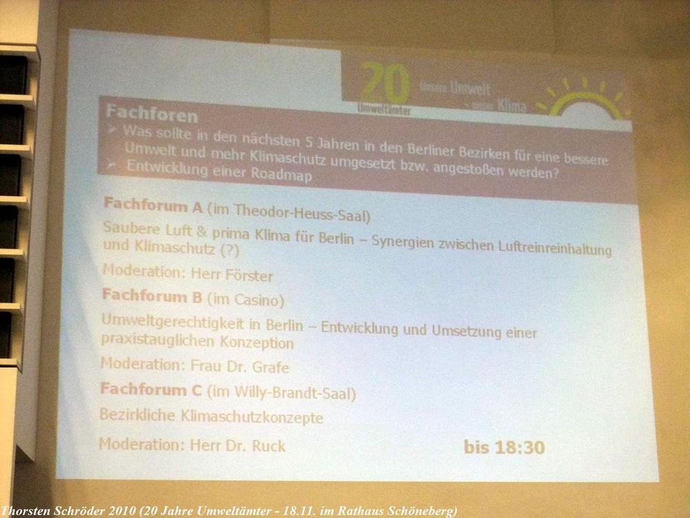 20 Jahre Umweltämter / Feier im Rathaus Schöneberg am 18.11.2010 (Stichworte: Umweltschutz, Klimawandel, Klimaänderungen, Umweltamt, Bezirke, Bezirksämter, Senat, Berlin, Gerstengarbe, Katrin Lompscher, Referat, Referate, Vortrag, Vorträge)