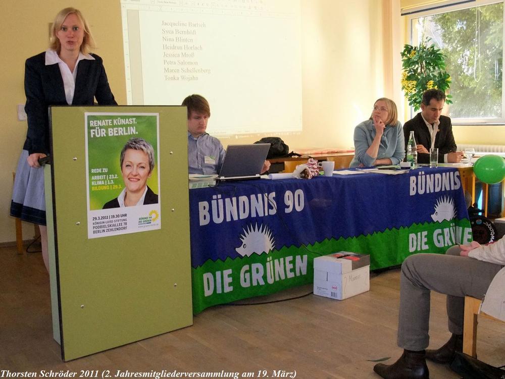 2. Jahresmitgliederversammlung (JMV) des Kreisverbandes Steglitz-Zehlendorf am 19.03.2011 (Stichworte: Partei, Bündnis90/DieGrünen, Bezirk, Bezirksgruppe, Berlin, Naturfreundehaus, Karl-Renner-Haus)